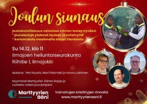 Su 14.12. klo 11 Jumalanpalvelus, Hannu Lahtinen, Mari Palomäki, kahvitarjoilu